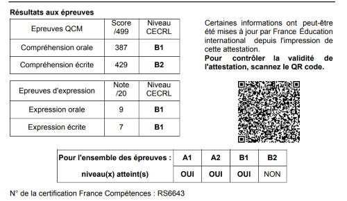 Geraldine scored 92/100 in the DELF B2! ⭐⭐⭐⭐⭐
